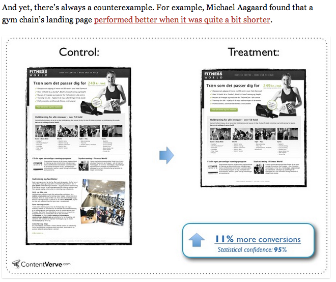 In Pratik Dholakiya’s post on ConversionXL exploring long-form versus short-form landing pages, he cites data from a number of other blogs’ posts to great effect.