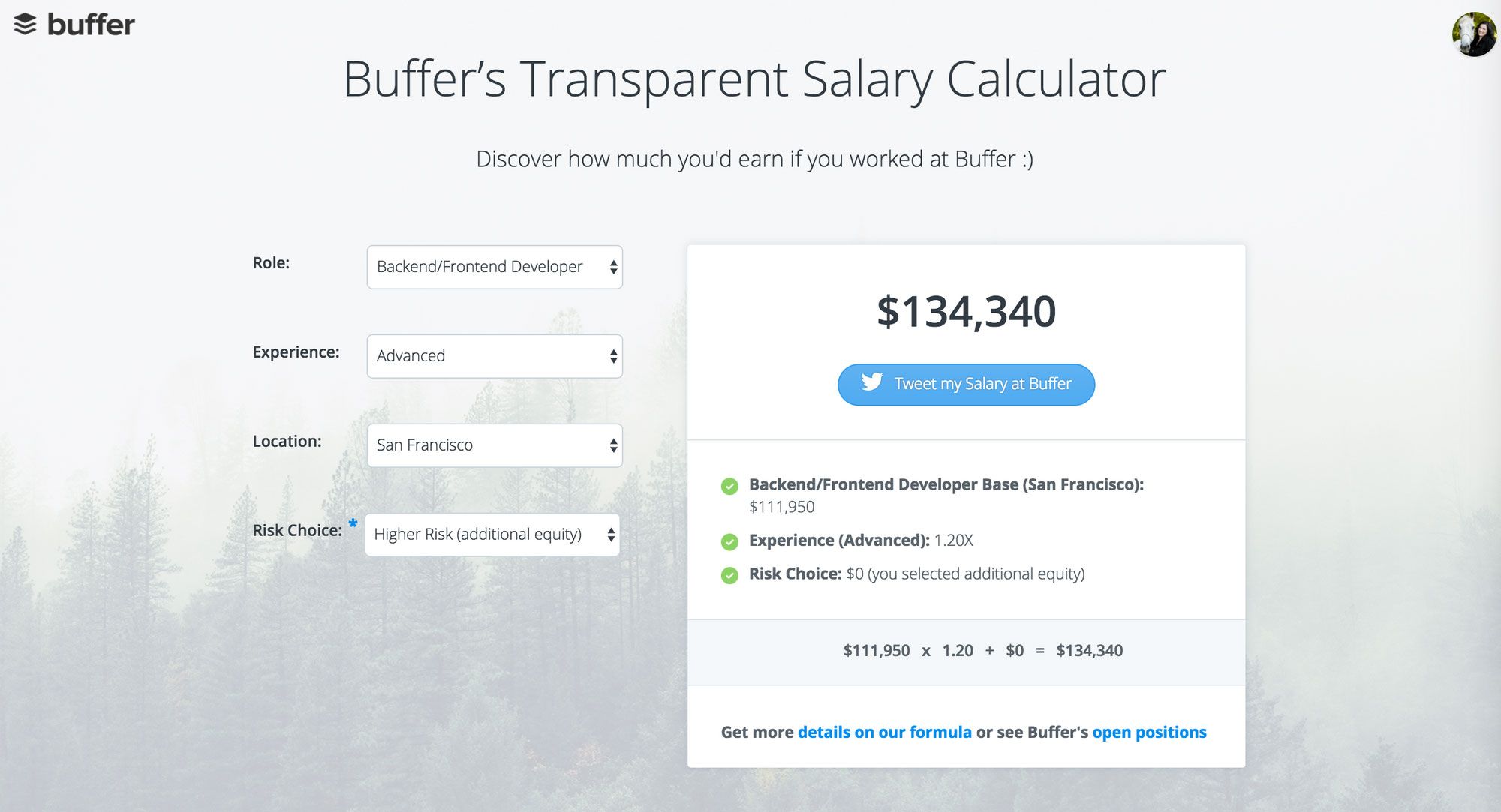 - Buffer’s salary calculator (See how much you’d earn if you worked at Buffer)