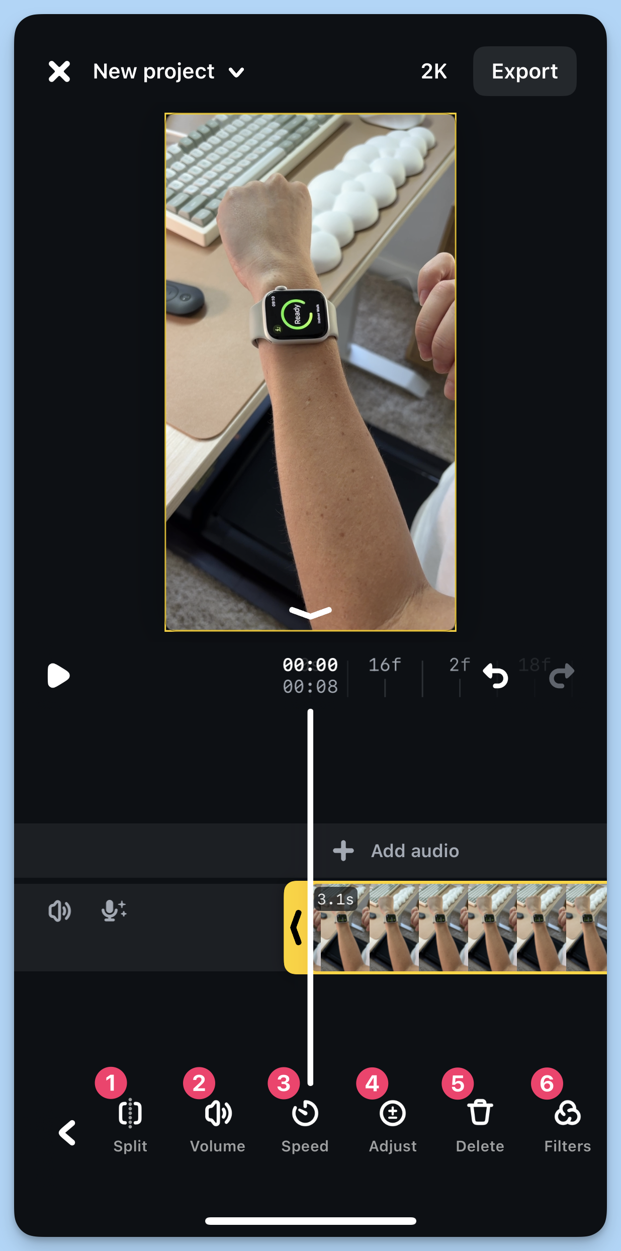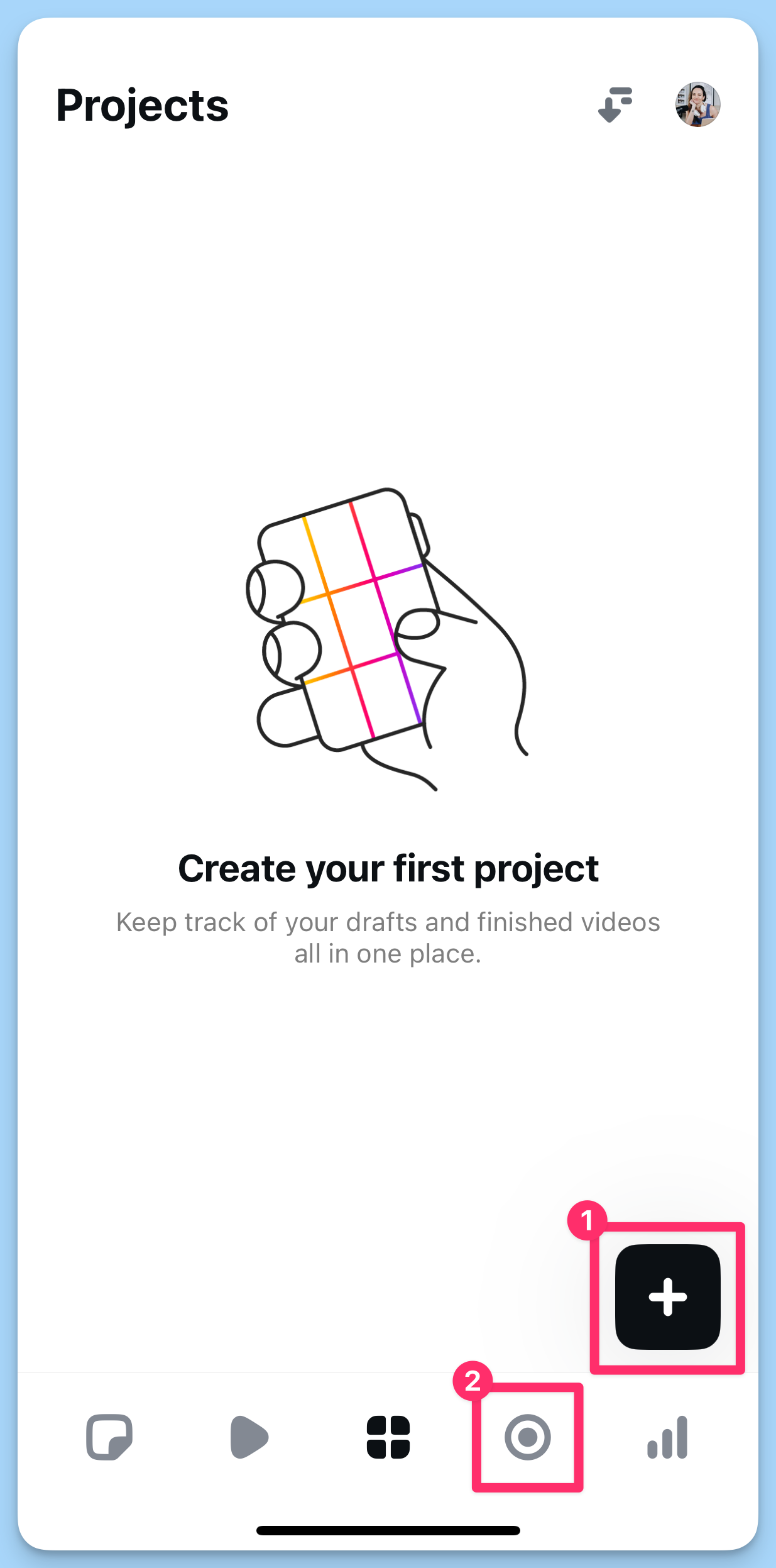 ⚡️ Pro tip: If you plan to record new clips and use footage from your camera roll, start by adding the footage first. You can record directly in the editor, too.