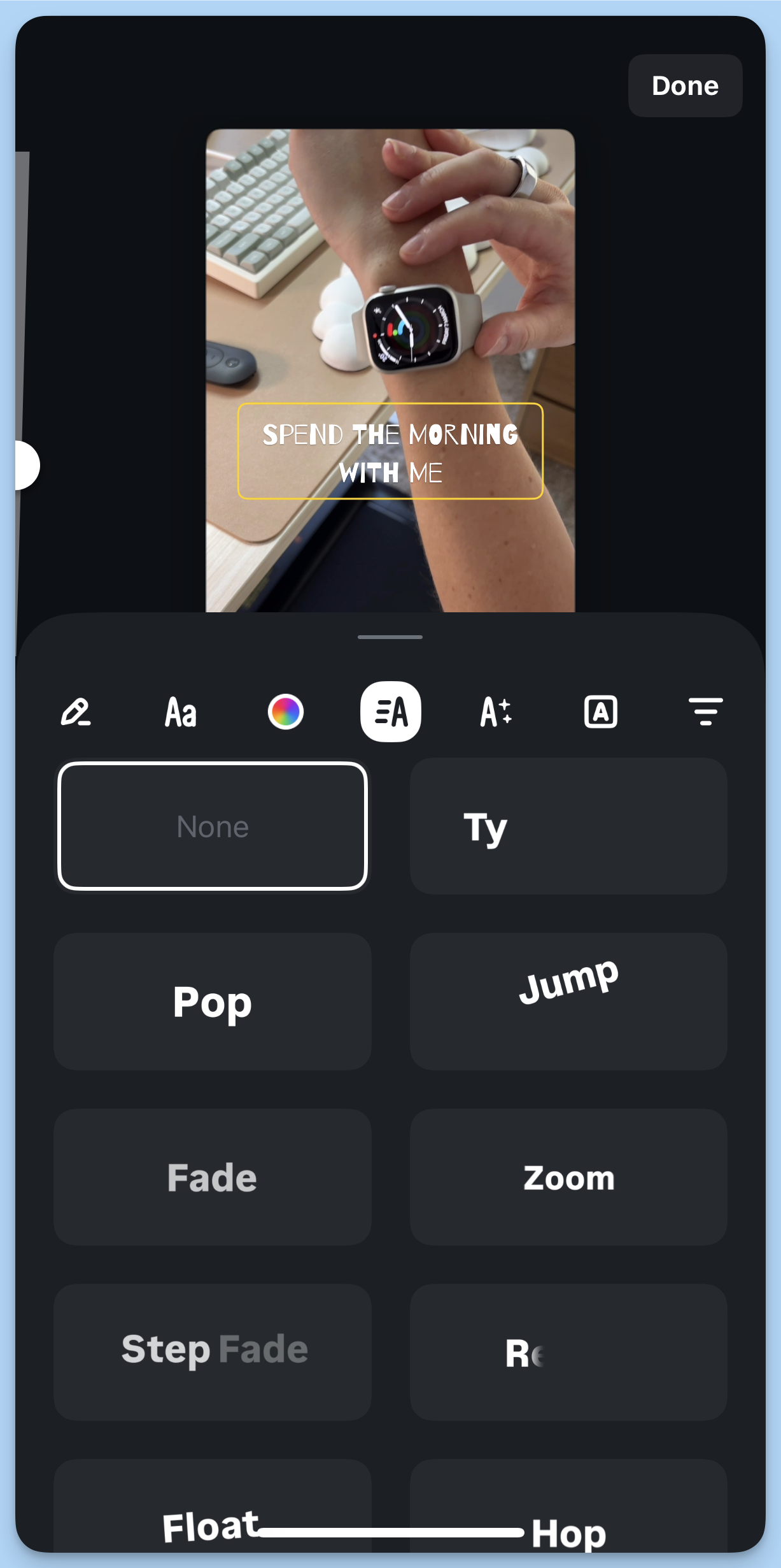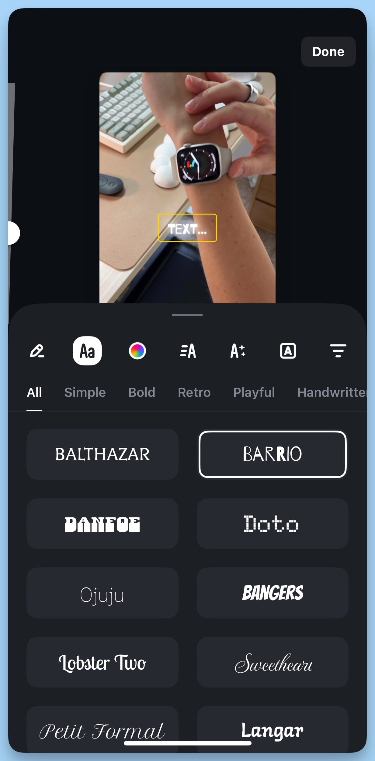 Discovering aesthetic combinations is one of my favorite new Edits features. There are enough fonts for you to really experiment, but not so many that it becomes overwhelming (I’m talking to you, CapCut).