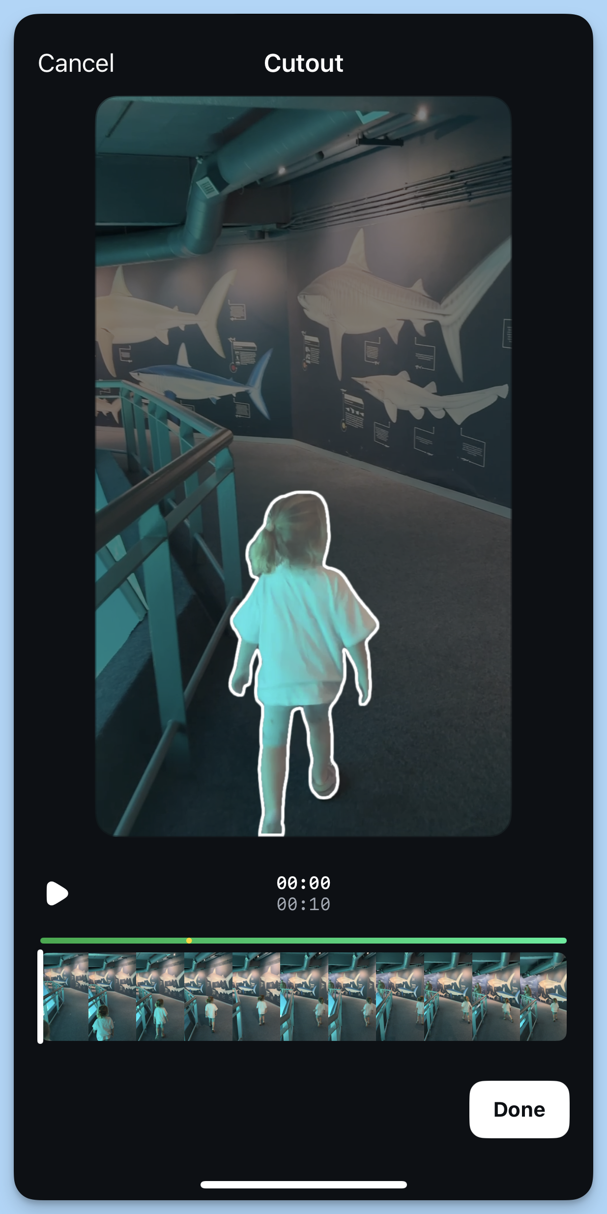 Cutout lets you add a portion of another clip or image over another. You can manually choose what part of the media you want, or Edits chooses it automatically.