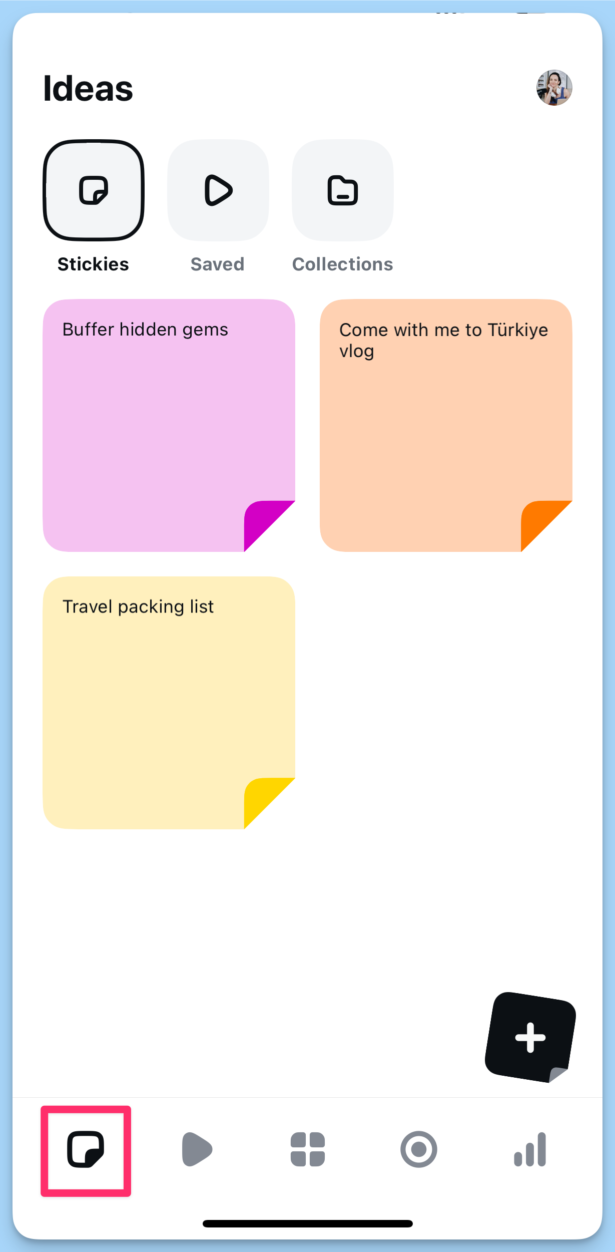 With Edits, you can save ideas as cute sticky notes inside the app by tapping the sticky note icon on the bottom left. To create a new note, tap the ‘+’ icon on the bottom right.