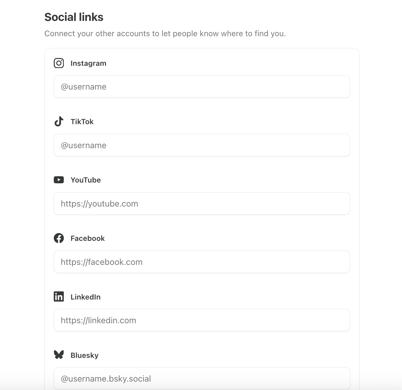 You can (and should) also connect your social media so that people can find you elsewhere.