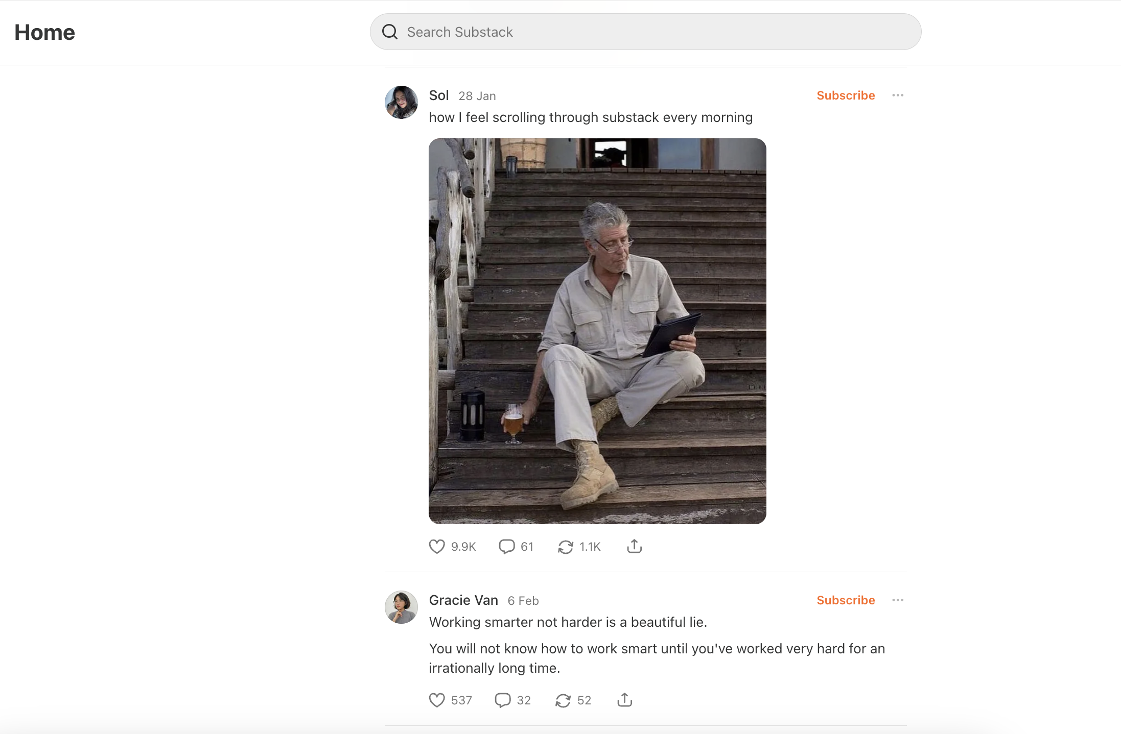 - It gives you direct access to your audience: Despite the built-in social media element with Substack Notes, the platform allows you to build an email list and communicate with subscribers directly without worrying about algorithms. Your audience actually receives what you send. For many writers, that’s a game-changer. "It's not a feature per se—but the fact that it’s email-based means my work actually reaches my audience. I don’t have to fight an algorithm to get in front of my own subscribers," said Fio.