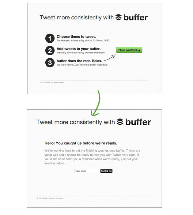 I’m an advocate of the lean startup principles which Eric Ries proposes. With my first startup, I learned a huge amount about the principles and I tried to implement them as much as I could. I found that practice is much harder than theory. I even started coding Buffer before I’d tested the viability of the business. As soon as I realised that, I stopped, took a deep breath and told myself: do it the right way this time. It was time to test whether people wanted this product.