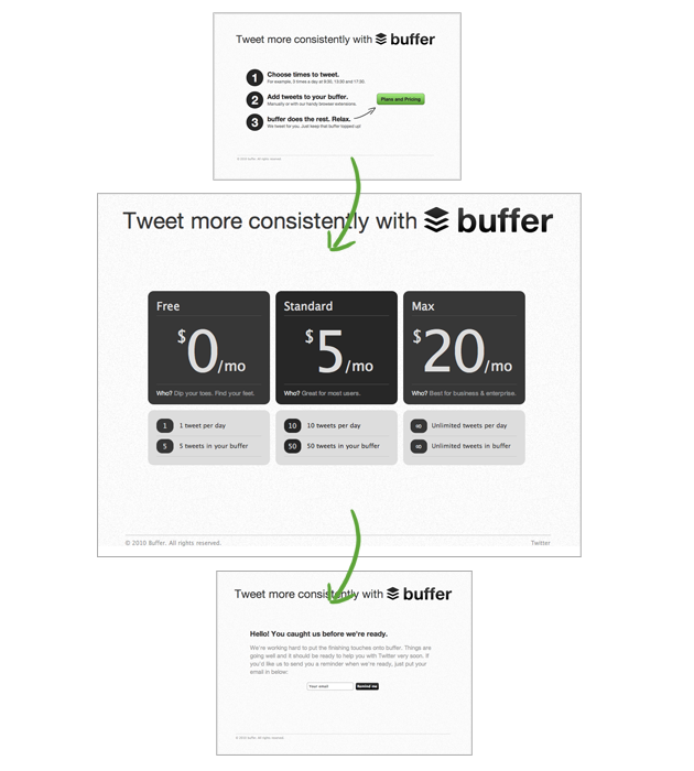 Despite being prepared for a long journey, and some things later on requiring that patient mindset, I was lucky with Buffer. It was evident that I had hit a chord with users and I am solving a problem which many people have. I also received a strong signal that the solution provided enough value to build a viable business – I had my first paying customer within 4 days of launching the “rough around the edges” product.