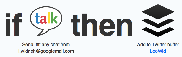 This is another super cool channel for you. Spend half your day in Gmail anyways? Why not setup ifttt’s bot. Send him any message and it will be added to your Buffer as a new update for Twitter or Facebook.