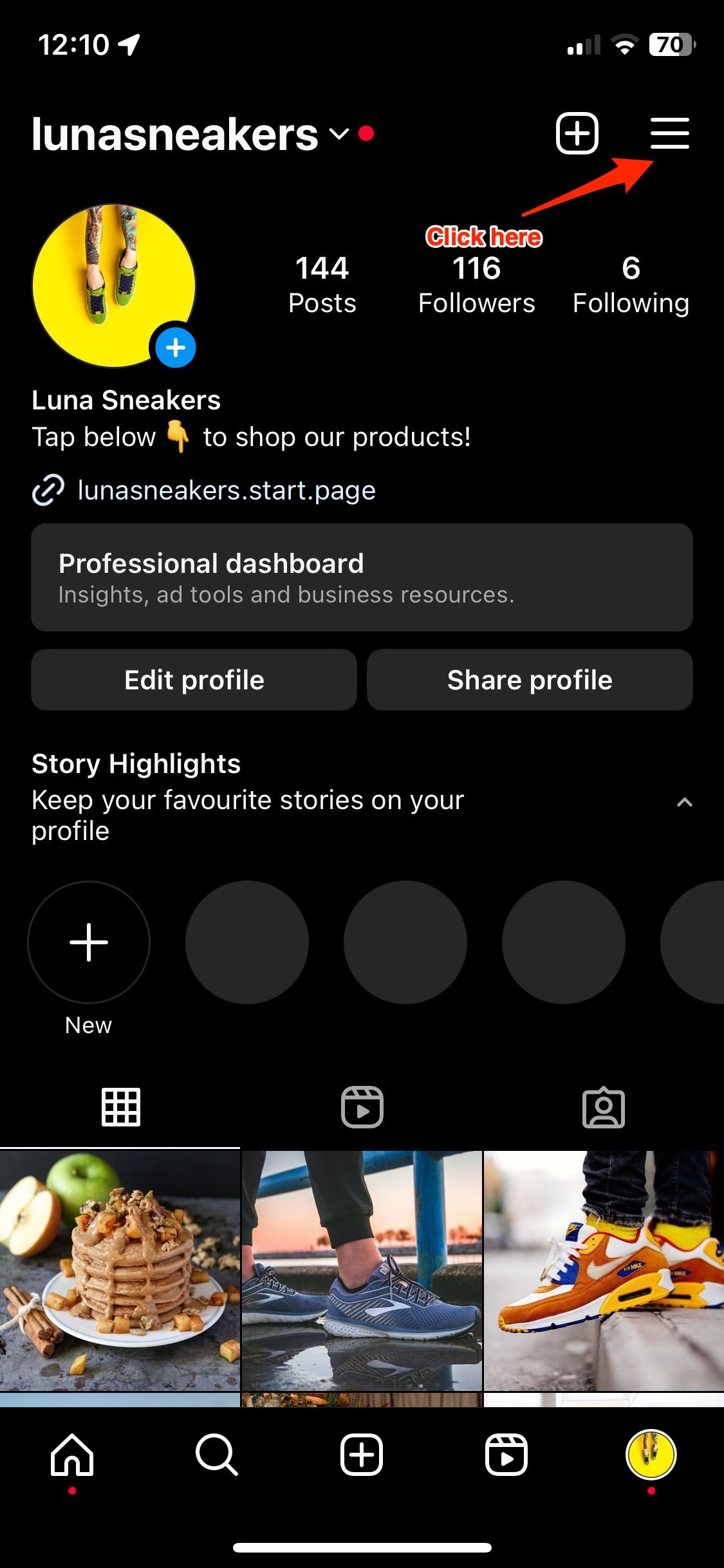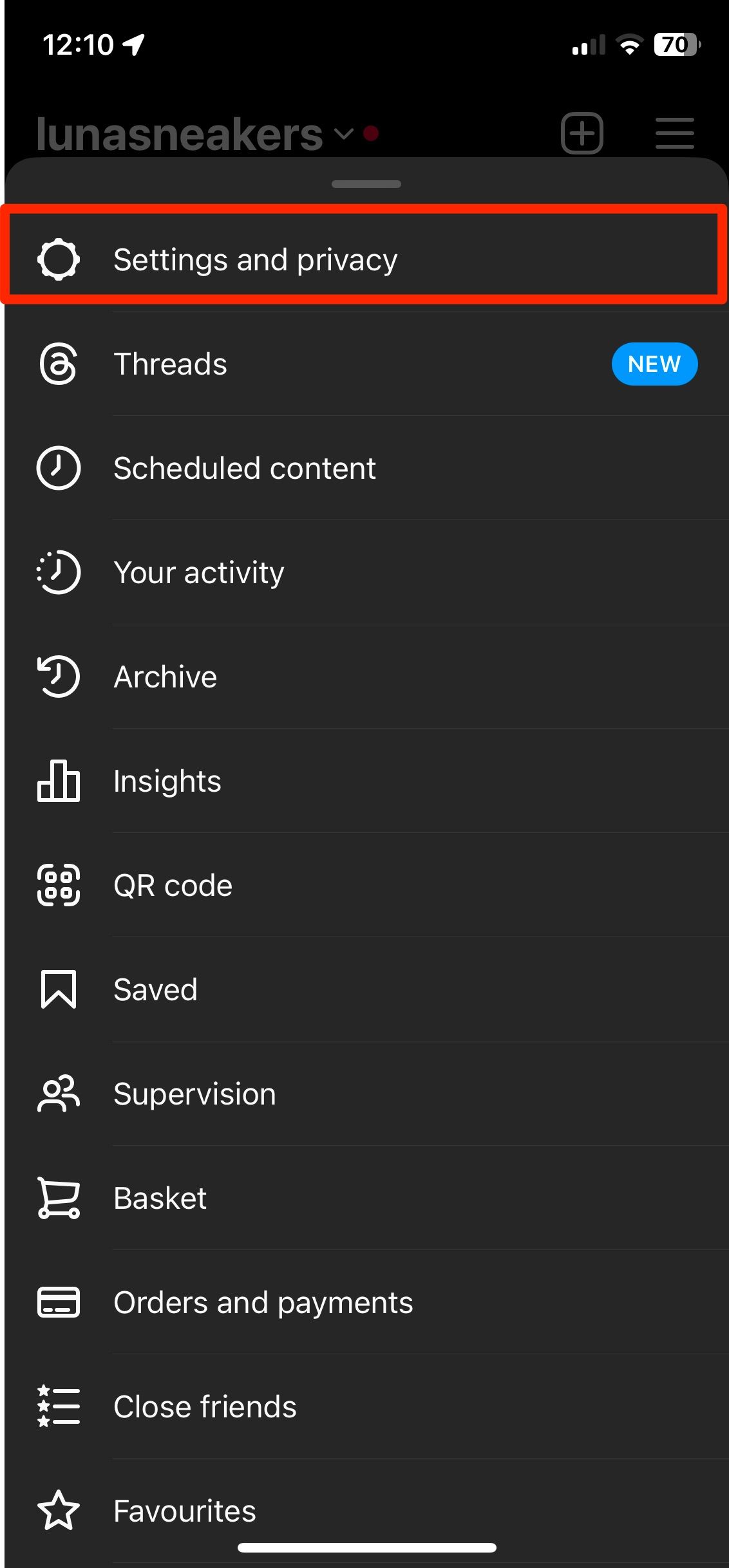 - In the Instagram app, go to your Instagram profile and select 'Settings and privacy'.