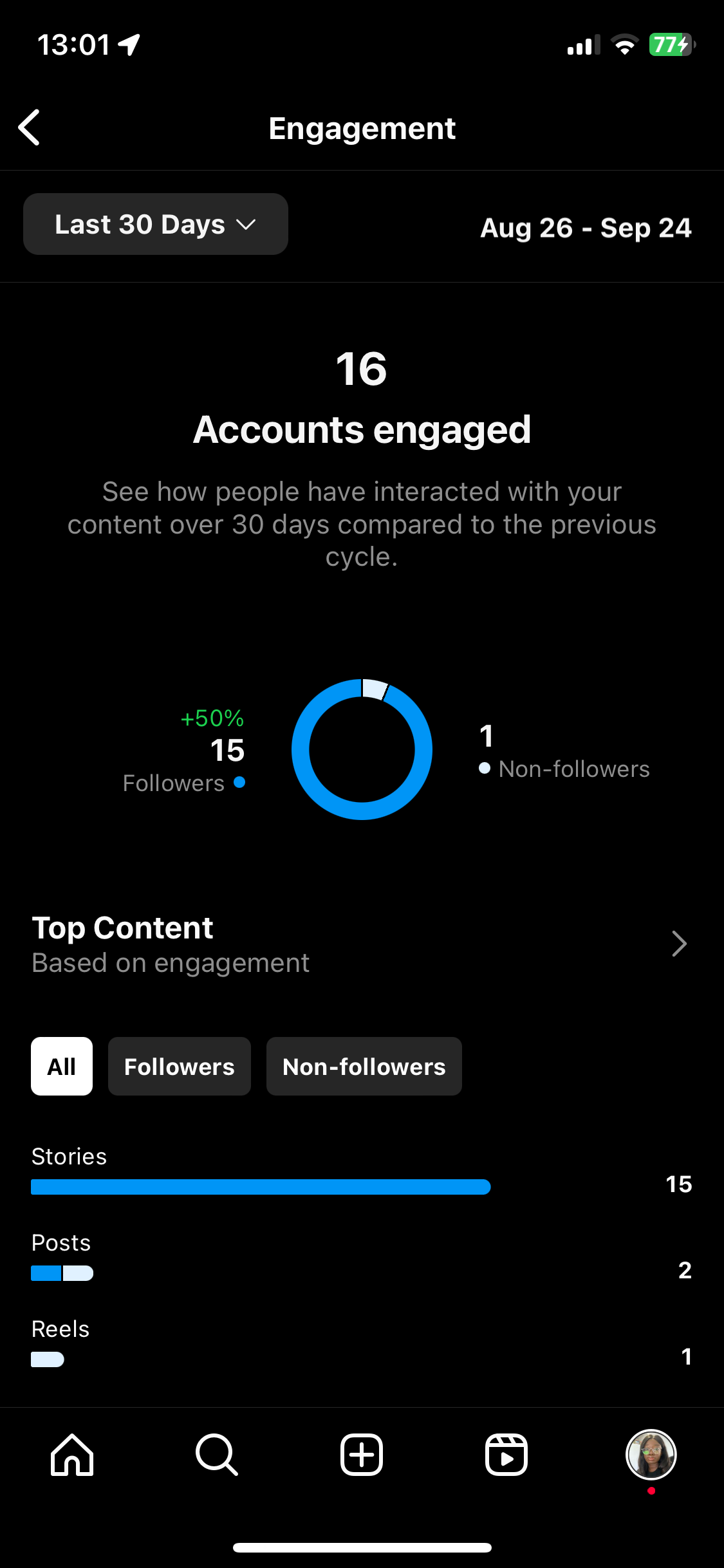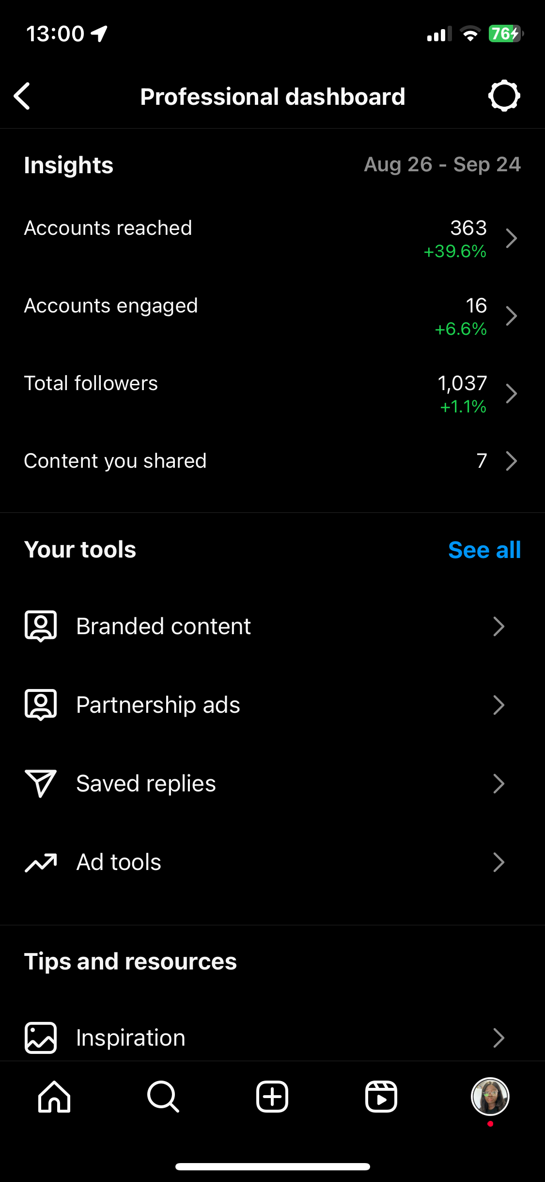 - Detailed follower growth insights: Creators get access to a dashboard that acts as a creator studio, allowing you to see content performance from past and present. You can keep track of your main demographics, metrics like follower count, content reach, and engagement rate, and even see your best time to post on Instagram.