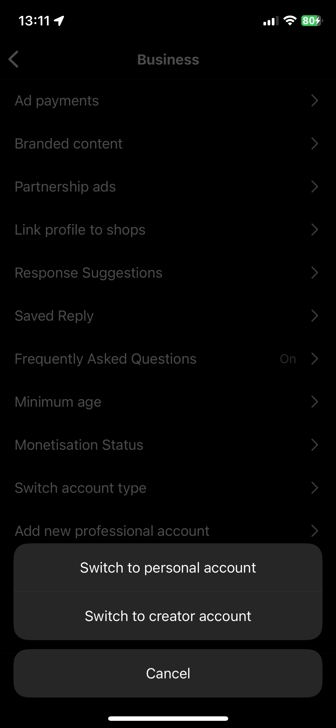 - Select 'Switch account type', then tap 'Switch to personal account'.