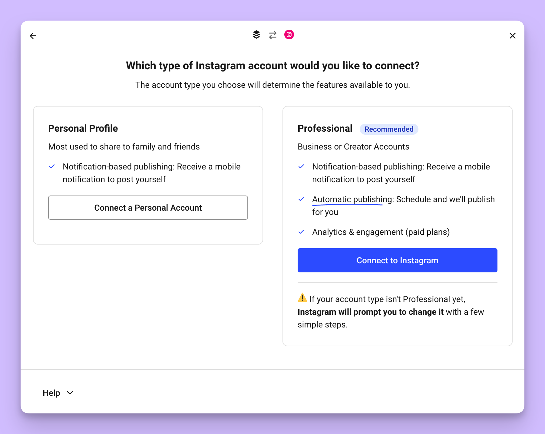 No matter which account type you choose, we’re here to help make managing your Instagram content as simple and effective as possible.