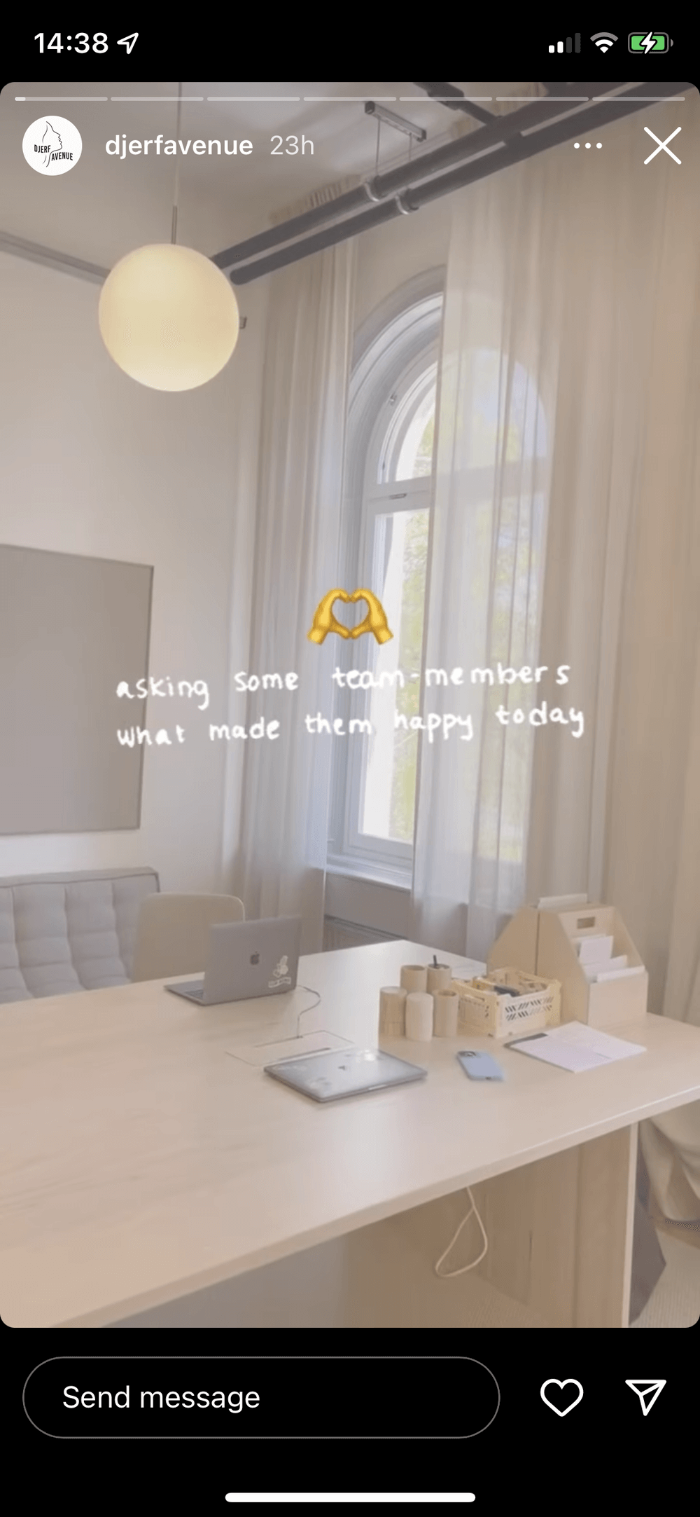 Djerf Avenue, a Swedish fashion label (@djerfavenue on Instagram): In the story I caught, the employees at Djerf Avenue shared what made them happy.