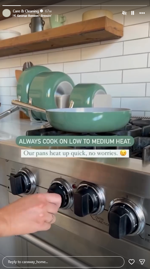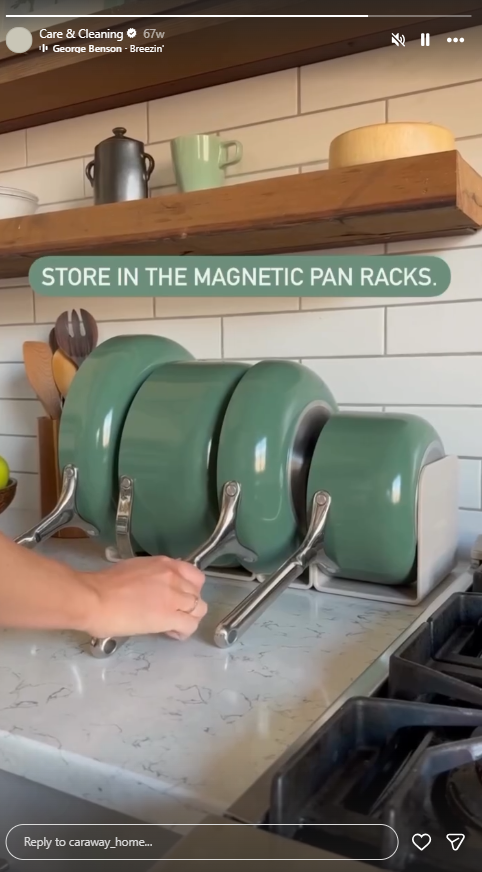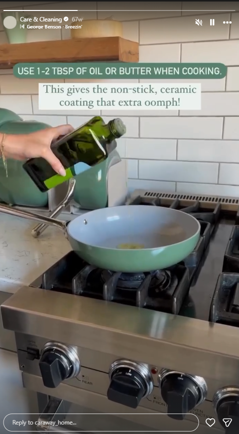 Caraway, a cookware brand (@caraway_home on Instagram): Using Instagram Story Highlights, Caraway keeps a 'Care & Cleaning' guide forever pinned to the top of their profile.