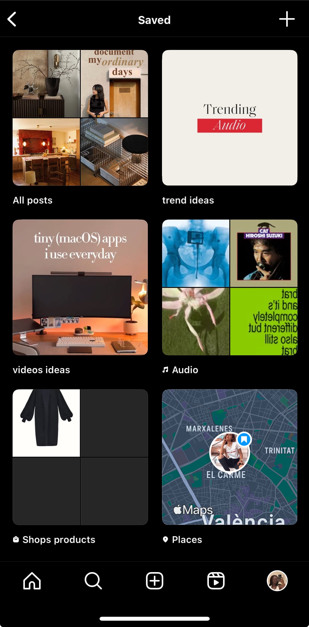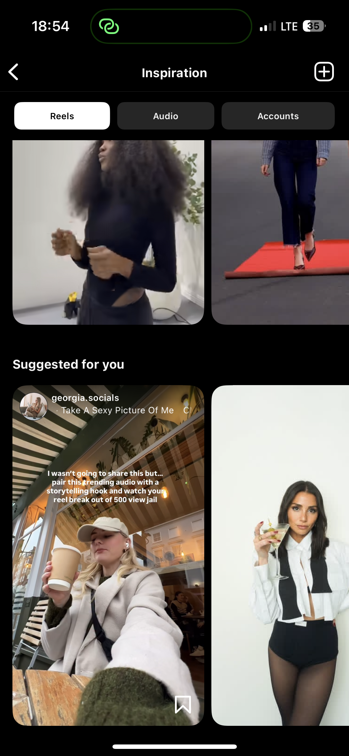 See a format, transition, or audio you love? Tap the three-line menu and save it to a folder to revisit in your Saved tab. You can also screenshot a Reel or add it to a private folder of trend ideas you want to try later.