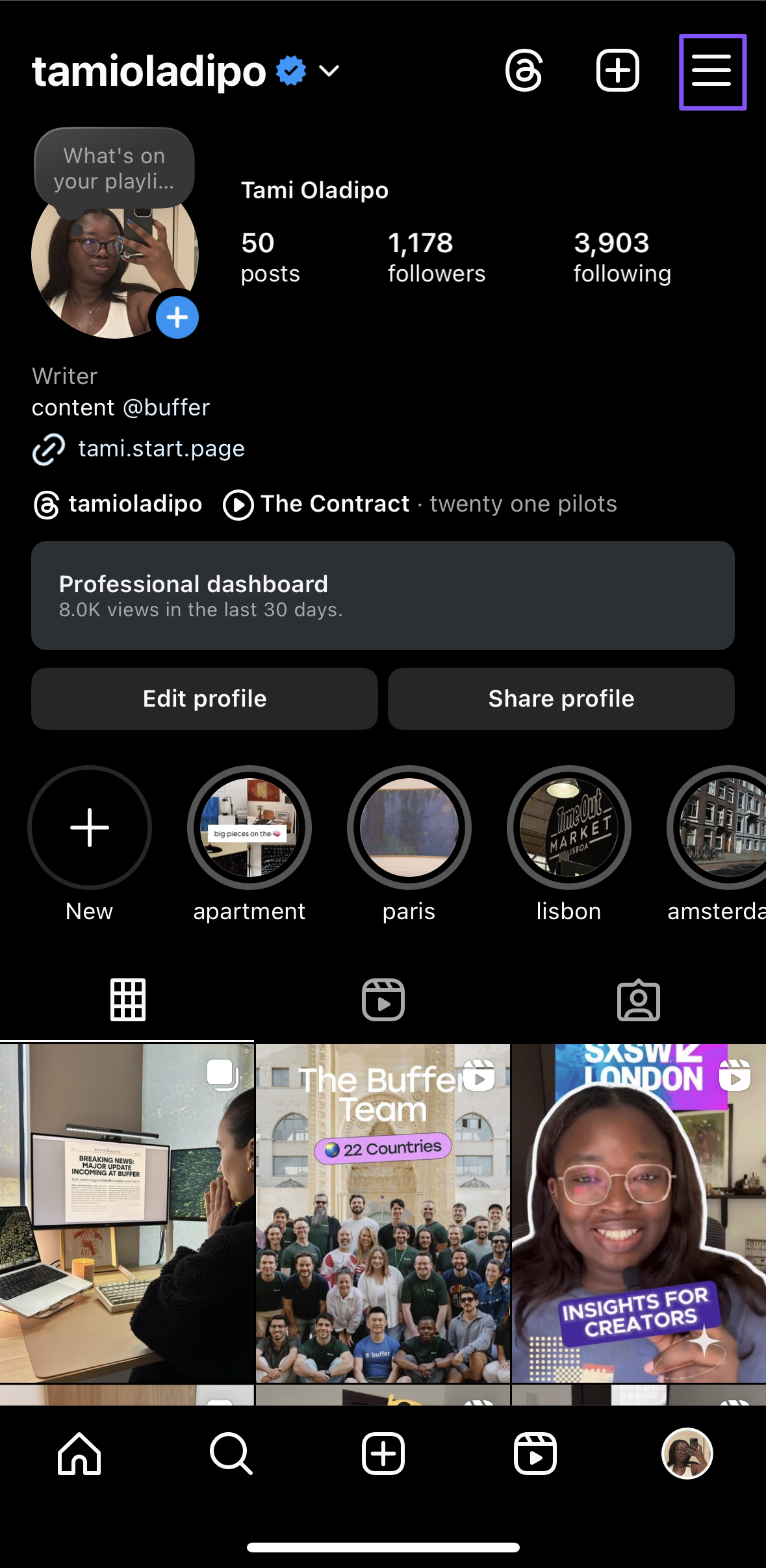 - Navigate to your Instagram profile on the app by tapping your profile picture at the bottom right of your screen.