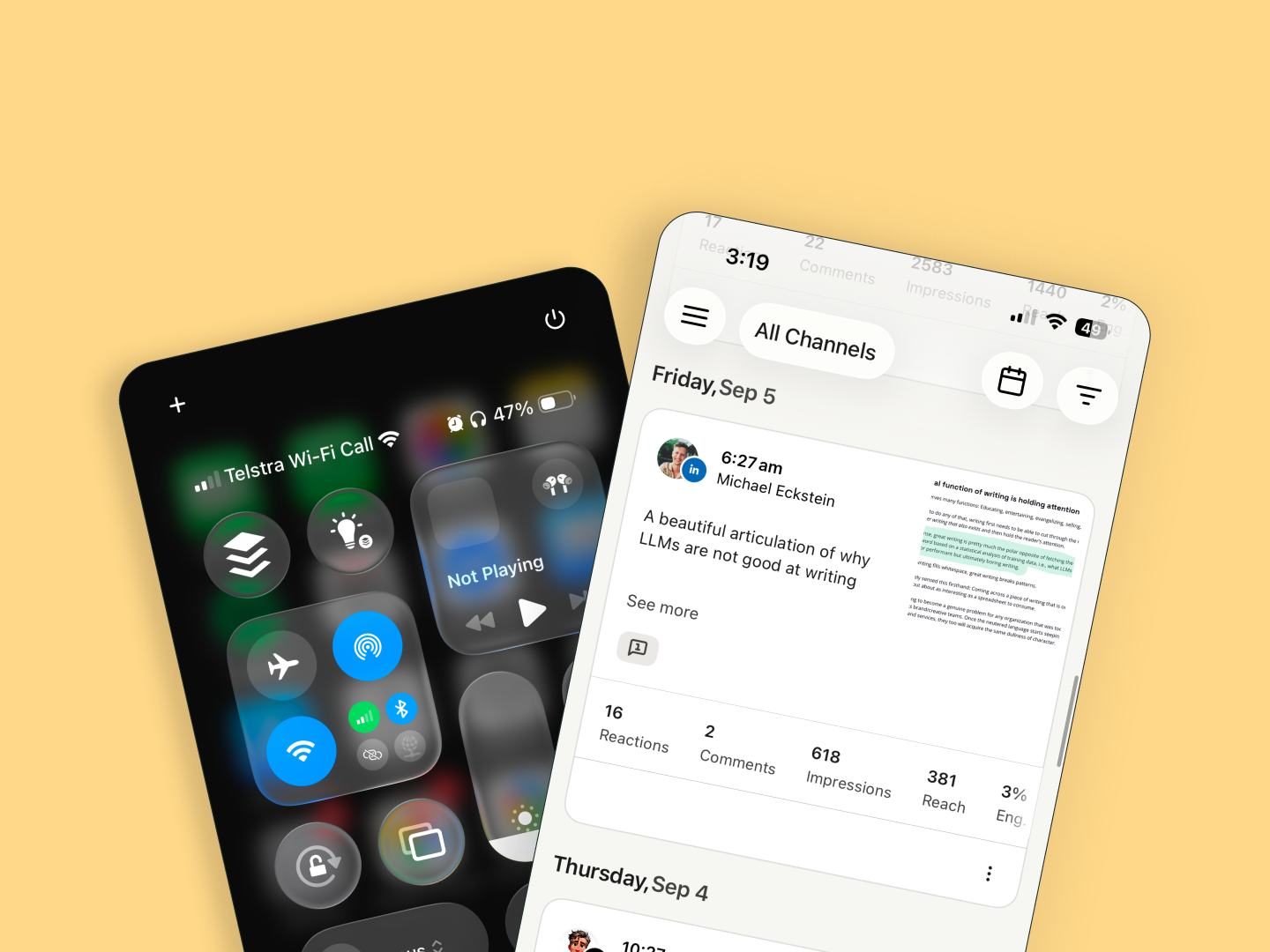 Buffer's app now uses Apple’s new Liquid Glass design system in iOS 26. Navigation feels cleaner, widgets are smarter, and the app remembers where you left off.