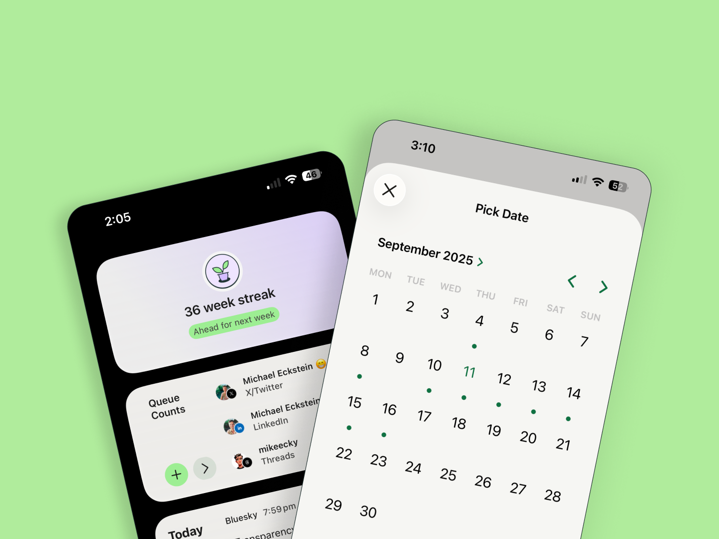 This update makes those moments smoother for me. Saving an idea is now one tap from the lock screen. The calendar is clearer and easier to work with. And if I want to keep an eye on my streaks or posting goals, I can do it straight from my watch.