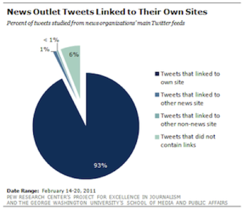 “fully 93 percent of the postings over the course of the week offered a link to a news story on the organization’s own website.”