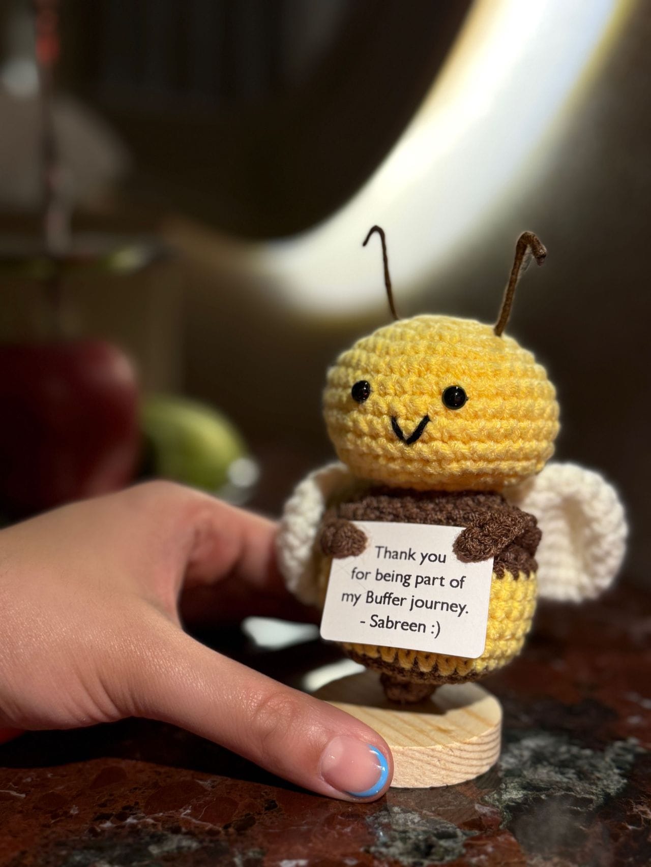 So I brought along a small, handmade crocheted bee to share with my teammates. A soft reminder of nectar, and the energy I hoped to bring into this new chapter. Small enough to sit on a shelf, but meaningful enough to say: