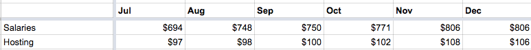 *This is a forecast of our future salaries and hosting expenses. Salaries are based on a hiring plan that’s currently under review, so we might change some things here to keep these costs under control.
