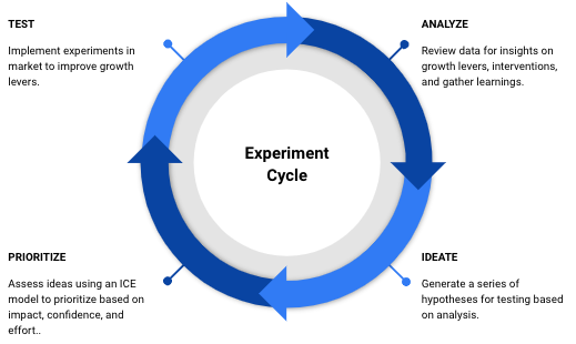 At the start of the following cycle, I shut down the experiment, extract insights, and then use those learnings to come up with more experiment ideas. Then, we go through the same process again.