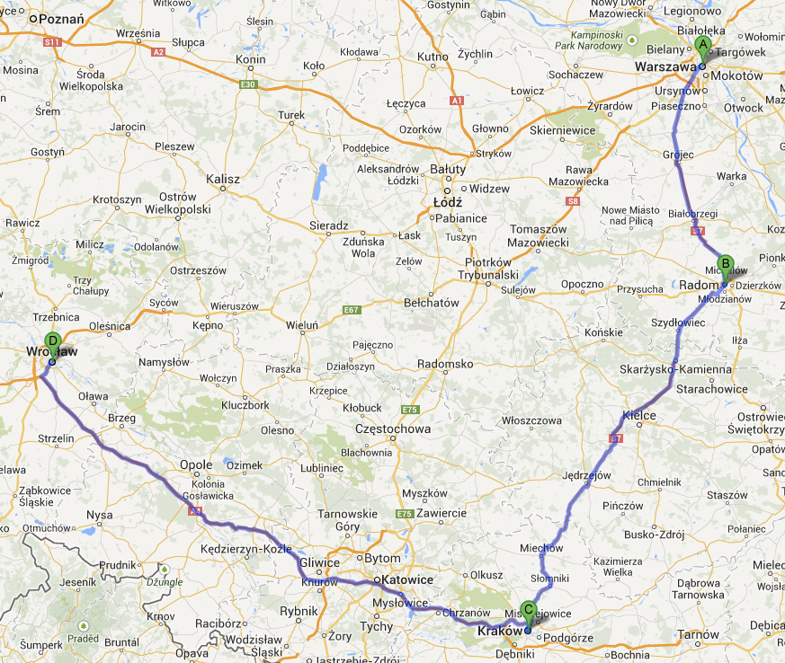 After an eventful stay in Warsaw, it was time for me to hit the road and go to Krakow. I knew very little about hitchhiking, so I figured that a large piece of cardboard and a marker pen would be a good start. I started making my way, by bus then on foot, to a suitable spot. I had a rough idea of where the main roads were, so I positioned myself near the highway sign which read “Radom,” a city on the way to Krakow.