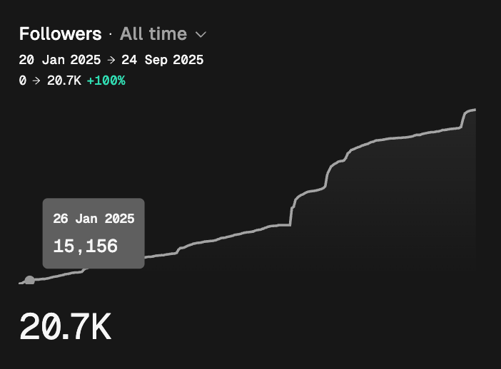Reaching 20K wasn’t on my radar then. It wasn’t until early 2025, after crossing 15K, that I set a clear goal: prove that Buffer’s strategies really work by applying them myself. I thought hitting 20K would validate the advice we share and maybe even open the door to brand partnerships — which it did, sooner than I expected.