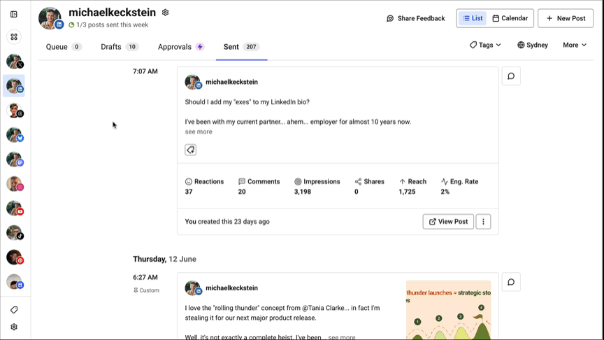 - Stay consistent. Having post-level data helps me keep my rhythm, even during busy weeks.