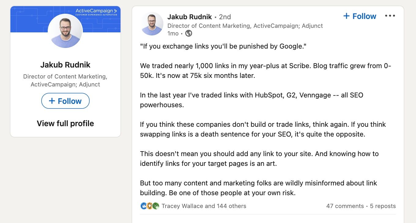 Kevin Indig is a Growth Consultant who regularly posts on LinkedIn about the industry’s latest trends, his take on them, and industry predictions. For an ever-changing industry like SEO, which usually faces multiple trend shifts, doing so places him as a voice that other industry peers look forward to listening to for updates.