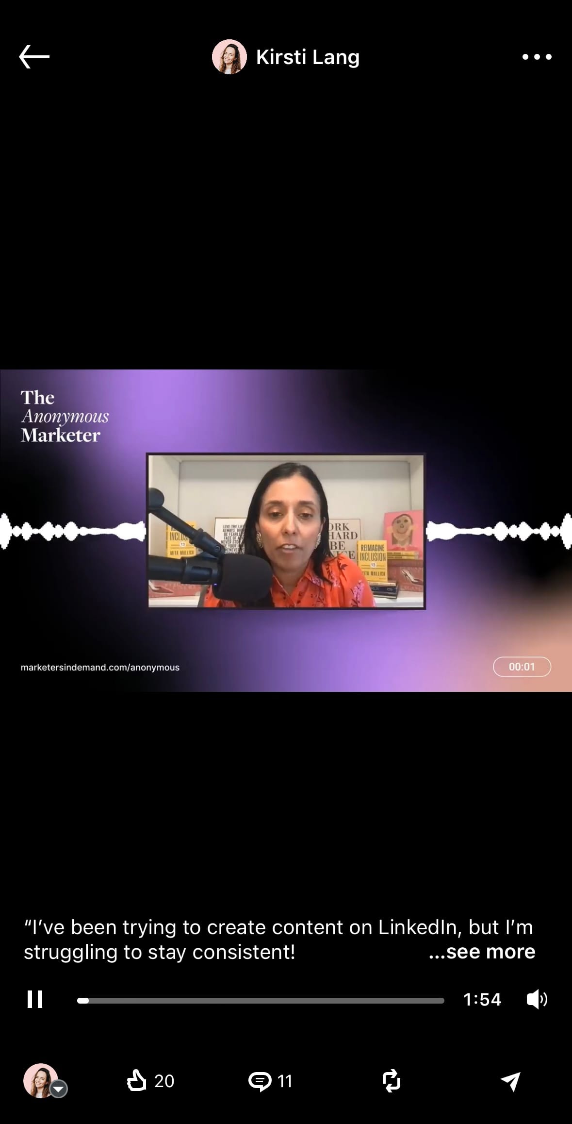 You’ll end up with dead space above and below your LinkedIn video, as in the screenshot below, which might send your viewers swiping past to get to a clip that looks better on their phone.