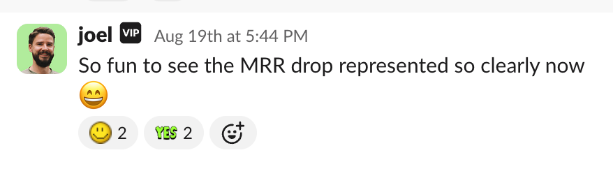 After sending that email and canceling the annual plans, we braced for a $14,000 monthly recurring revenue (MRR) drop. But the numbers didn’t budge.