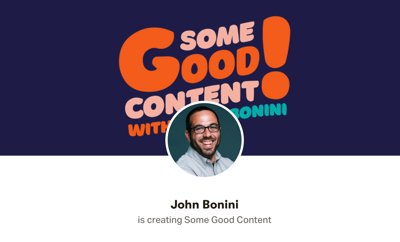 A good example of a creator leveraging this method is John Bonini who launched Some Good Content last year on Patreon. Starting from $10/month, John Bonini gives his 500+ Patrons access to his best content marketing tips and strategies.