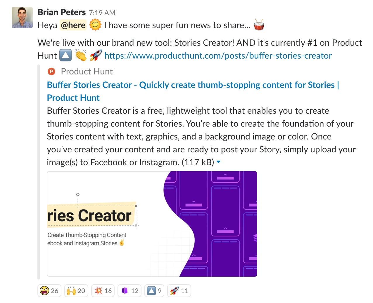 When we launched Stories Creator, we felt a real energy within the team. (Check out all those emoji replies!)