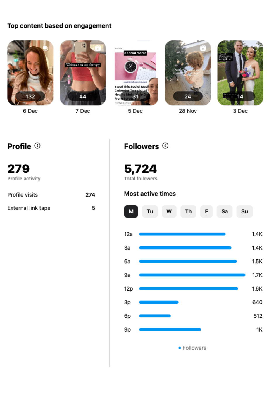 I trialed Meta Verified for two weeks. Here’s the data for the two weeks prior to subscribing to Meta Verified: