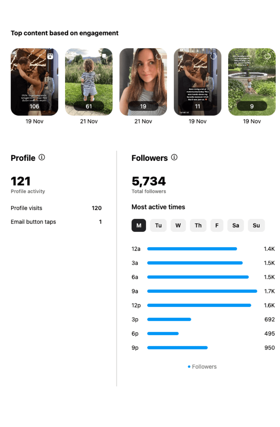 To be candid, I’d been expecting some sort of boost in content performance — whether from the added gravitas of the blue tick or Instagram’s algorithm favoring content from my premium account. But over the course of my two-week trial, my reach actually dropped (I even lost a few followers!) while my engagement and profile visits went up.