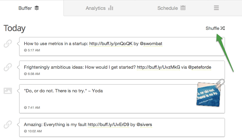 2. A shuffle option: Mix up what’s in your Buffer queue