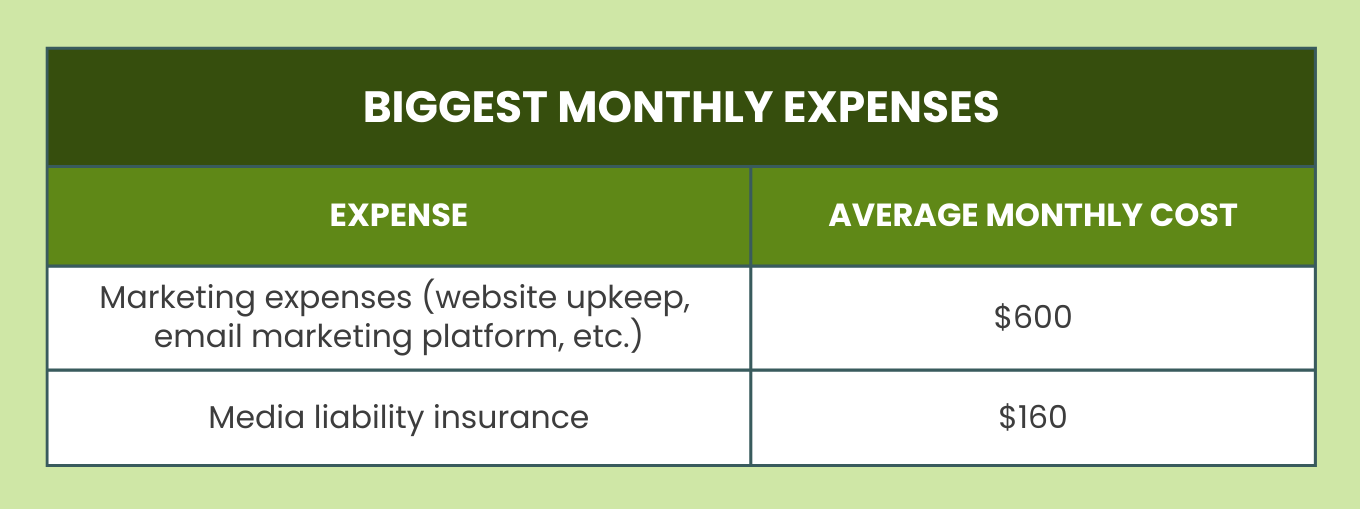 Financial support for business: I had family support while I got my business off the ground. (I was living with my boyfriend—now husband—who covered rent and food, and my parents pitched in where they could, including paying my car payment for one month.) I also received a $20,833 PPP (paycheck protection program) loan during the pandemic.