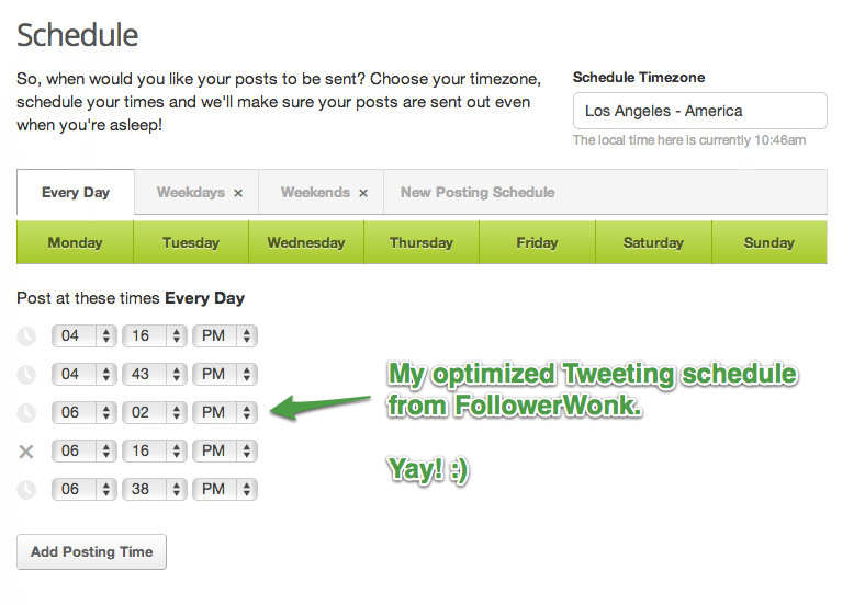 It will then automatically create a new schedule for you with these optimal times in Buffer and voila, you’ve got an optimized schedule to start Tweeting at: