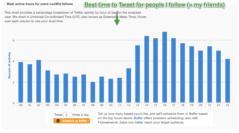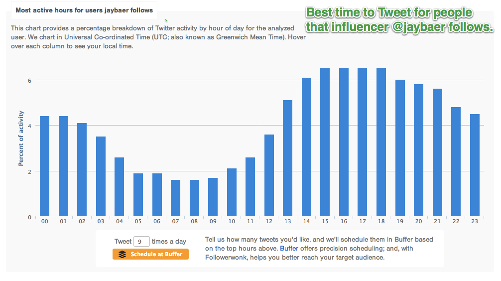 Other optimal Tweeting times to explore with FollowerWonk and Buffer