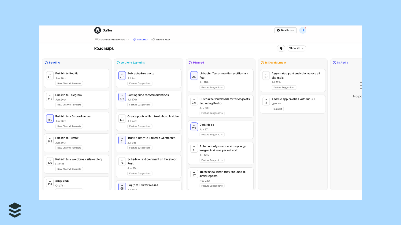While it's always difficult to say goodbye to tools that have been part of our journey, we're excited about what this means for the future of Buffer. We have a lot of big plans for new features and improvements to the product. If you're curious about what's coming next, we encourage you to follow along with our transparent roadmap.