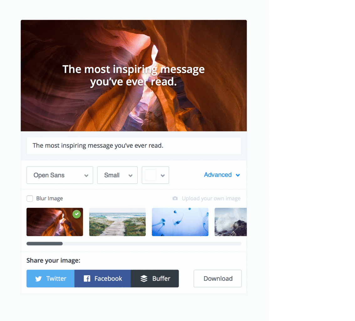 - At the same time, our Customer Development team was hearing that users were struggling to create engaging images for the content they were sharing through Buffer. Users recognized that if they included an image with their posts, they would see more engagement. However, this was a challenge to put into practice.