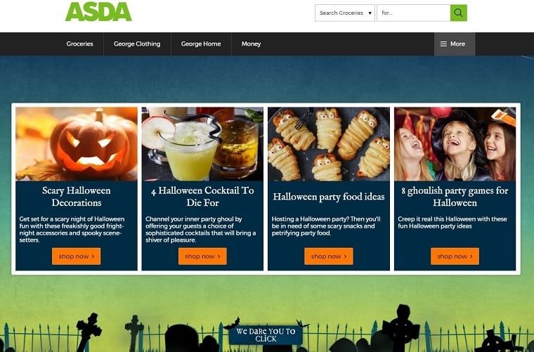 Asda also got into the Halloween spirit by creating an online hub focused on Halloween party ideas, foods and cocktails:
