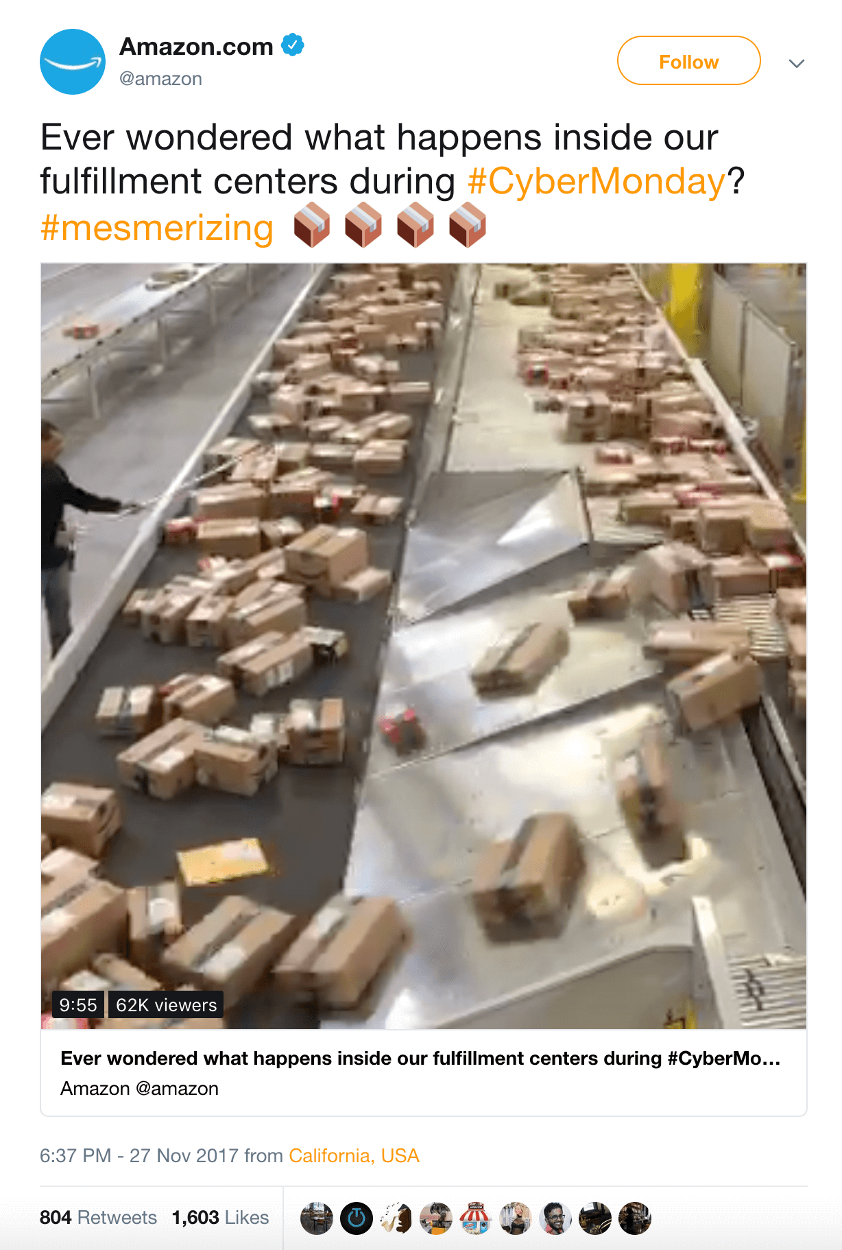 With so many businesses sharing offers to shoppers, try to think about how you could stand out and do something a little different on Cyber Monday. For example, you could take your customers behind the scenes like Amazon did in 2017: