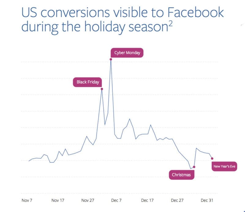 In 2016, Facebook found that conversions peak on Cyber Monday (with Black Friday in the second spot):