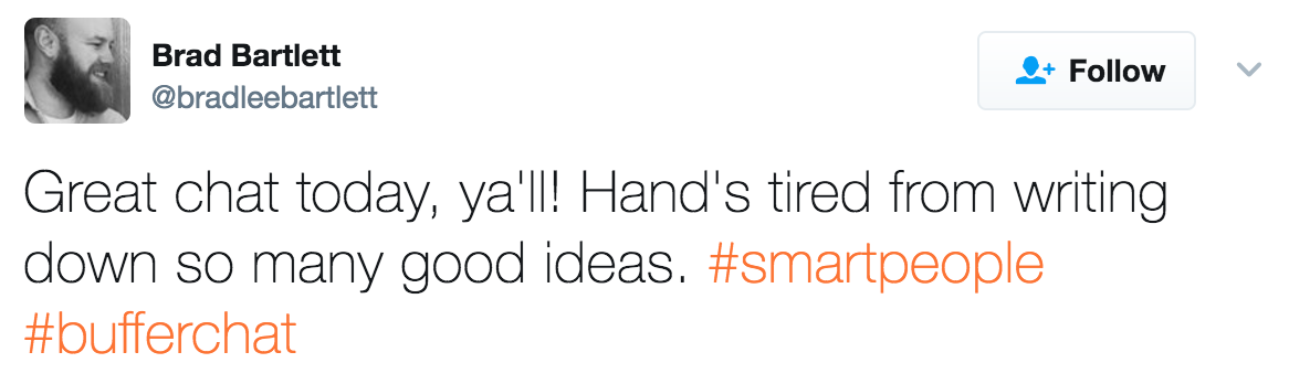 I LOVE #bufferchat! I’ve only been in the marketing world a few months & they’ve been SO helpful as I navigate!