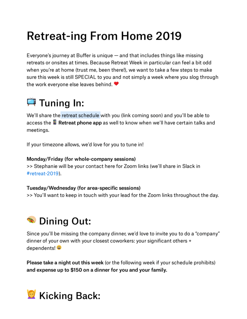 Personally, I missed one of our largest team retreats — and what would have been the retreat where I would have met the three teammates I hired on to Buffer! – when I was out on family leave with my firstborn.