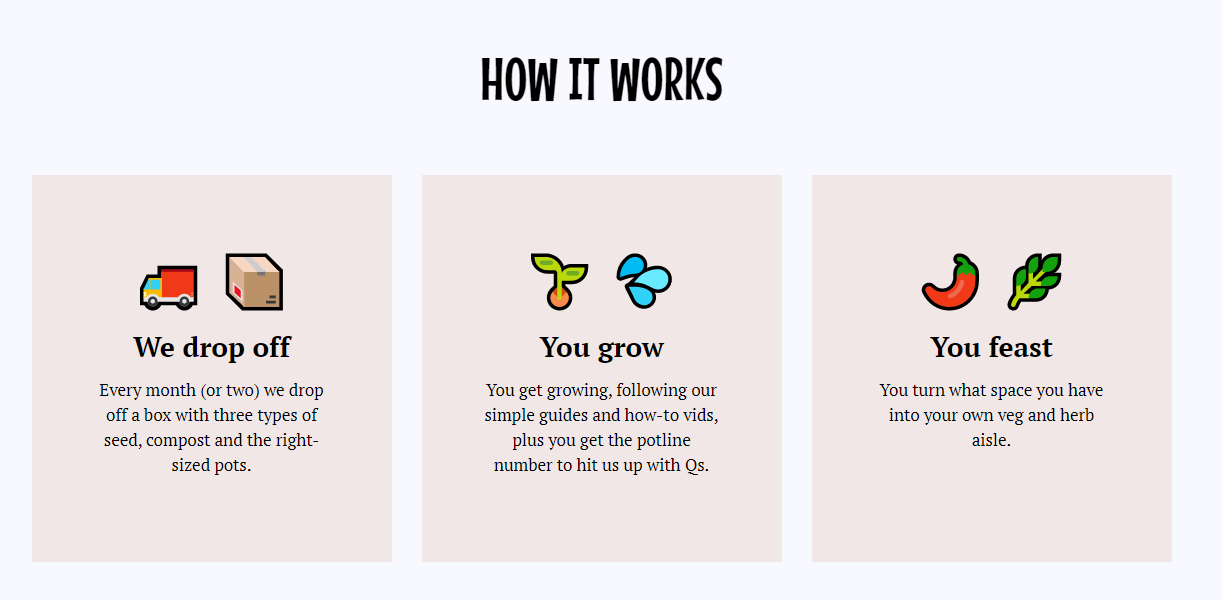 Your brand identity’s visual and linguistic elements should end up evoking similar thoughts and emotions. Going back to Pot Gang, it keeps its language lighthearted and accessible, just like its seed packet characters.