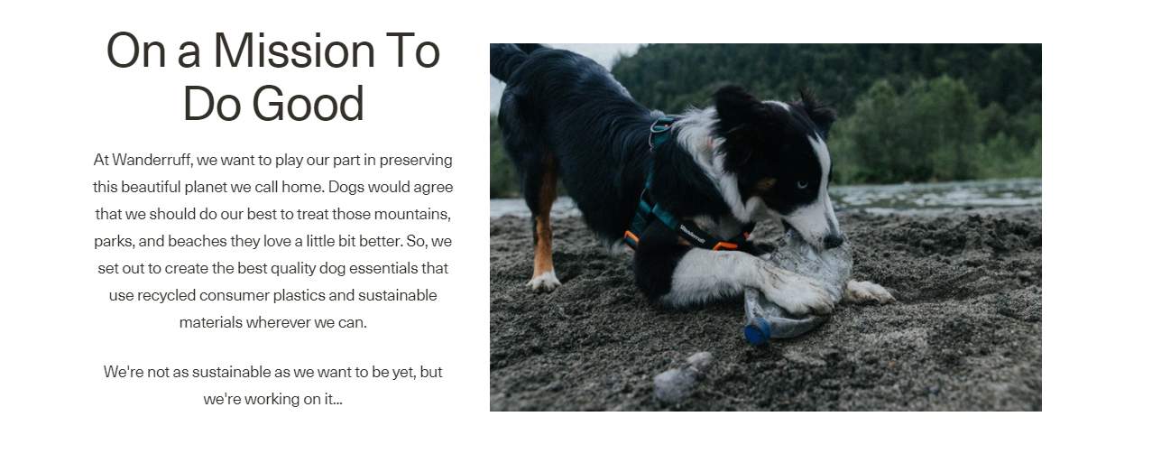 Wanderruff begins with its goal to help preserve the planet, explains why it has that goal and tells you what it’s doing to meet it. Then, it mentions its future objective of becoming more sustainable. When you include your future plans in your brand story, you’ll show that you have an ongoing dedication to helping customers solve their problems.