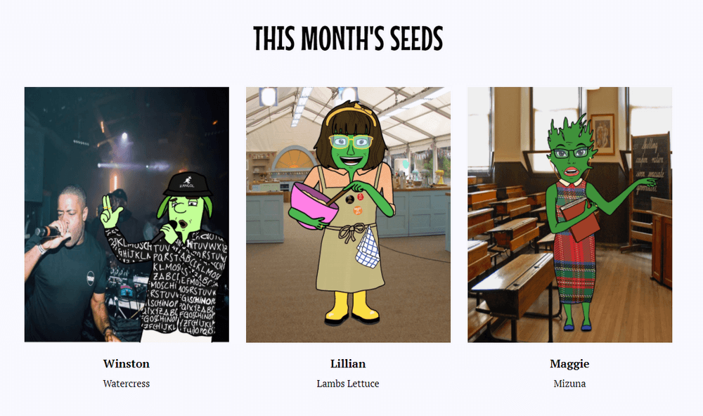 Brand visuals can also include art styles or visual elements you plan to use regularly in your graphics. Pot Gang, a seed subscription service, transforms each of its monthly seeds into a character with a unique personality and cartoon drawing. This one-of-a-kind art keeps the brand visually distinct.
