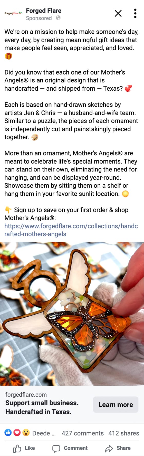 Last year was a big year for my handmade ornaments company, Forged Flare. We went into 2022 determined to nail our online advertising strategy. We spent the early part of the year experimenting with different platforms, creatives, and approaches so that when the holiday season—our biggest time of year—came, we could crank up the budget and reap the rewards. And it paid off: In Q4 of 2022, we quadrupled our income from the previous year.